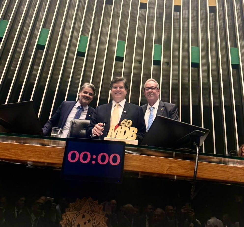 A cerimônia do Jubileu de Diamante do MDB aconteceu no plenário da Câmara dos Deputados. O ato reuniu deputados, senadores e lideranças filiadas que comemoram as seis décadas de uma história de luta, conquistas e resistência em favor da democracia.