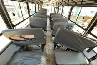 Governo Célia Sales: TCE encontra pneus desgastados e tonel amarrado em porta de ônibus escolar de Ipojuca