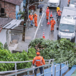 As equipes de Infraestrutura estão de prontidão, realizando vistorias em canais, córregos, rios, e em parceria com a Defesa Civil, fazendo vistorias em encostas de barreiras e podação de árvores.